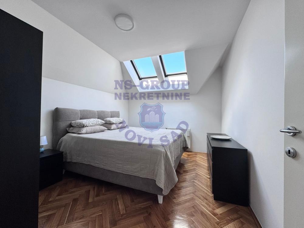 Na prodaju je svetao i izuzetno prijatan dupleks od 78 m², smešten u zgradi novije gradnje koja se pažljivo održava. Stan je dvostrano orijentisan, što mu obezbeđuje obilje prirodnog svetla tokom celog dana i odličnu ventilaciju, čime dodatno doprinosi osećaju udobnosti. Nalazi se na mirnoj, a izuzetno povezanoj lokaciji – u blizini Sajma, autobuske i železničke stanice, sa kompletnom infrastrukturom potrebnom za svakodnevni život nadomak ruke.Enterijer odiše toplinom i funkcionalnošću: donja etaža otvorenog tipa okuplja dnevni boravak, kuhinju i trpezariju u jednu skladnu celinu, dok su spavaće sobe smeštene tako da pružaju privatnost i mir. Stan se prodaje potpuno namešten, sa kvalitetnim nameštajem i opremom, te je spreman za useljenje bez ikakvih dodatnih ulaganja. Mirno dvorište zgrade nudi mogućnost parkiranja, što je posebna pogodnost u ovom delu grada. Ova nekretnina je idealna za porodice koje žele funkcionalan i siguran dom u savršenom spoju udobnosti, praktičnosti i lokacije.