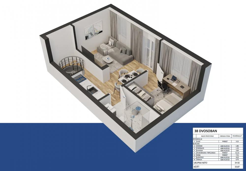 Telep, 33.87m2, dvosoban stan, novogradnja