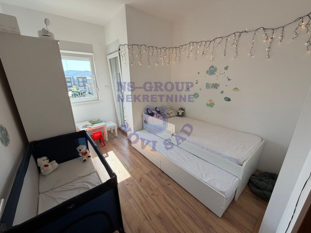Predstavljamo vam komforan troiposoban stan lepog rasporeda. Novije gradnje, tačnije useljen 2025.godine, prodaje se kompletno opremljen nameštajem i tehnikom kao što vidite na fotografijama. Komforan i svetao, nalazi se u novoj urbanoj zoni porodičnog stanovanja koju odlikuju urbane vile sa malim brojem stanova i dovoljno prostora za parkiranje. Grejanje je etažno na toplotne pumpe novije generacije što podrazumeva veliku uštedu jer se plaća samo tokom grejne sezone i po utrošku. Dvostrano je orjentisan pa može da se uživa i u pogledu na obronke Fruške gore. Pozovite naše agente za više informacija i da zakažete gledanje.