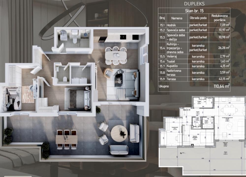 Telep, 110.64m2, troiposoban stan, novogradnja, 298.728 €