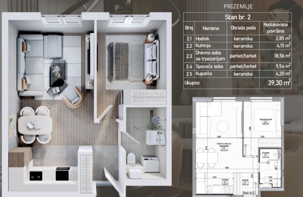 Telep, 39.30m2, jednoiposoban stan, novogradnja, 98.250 €