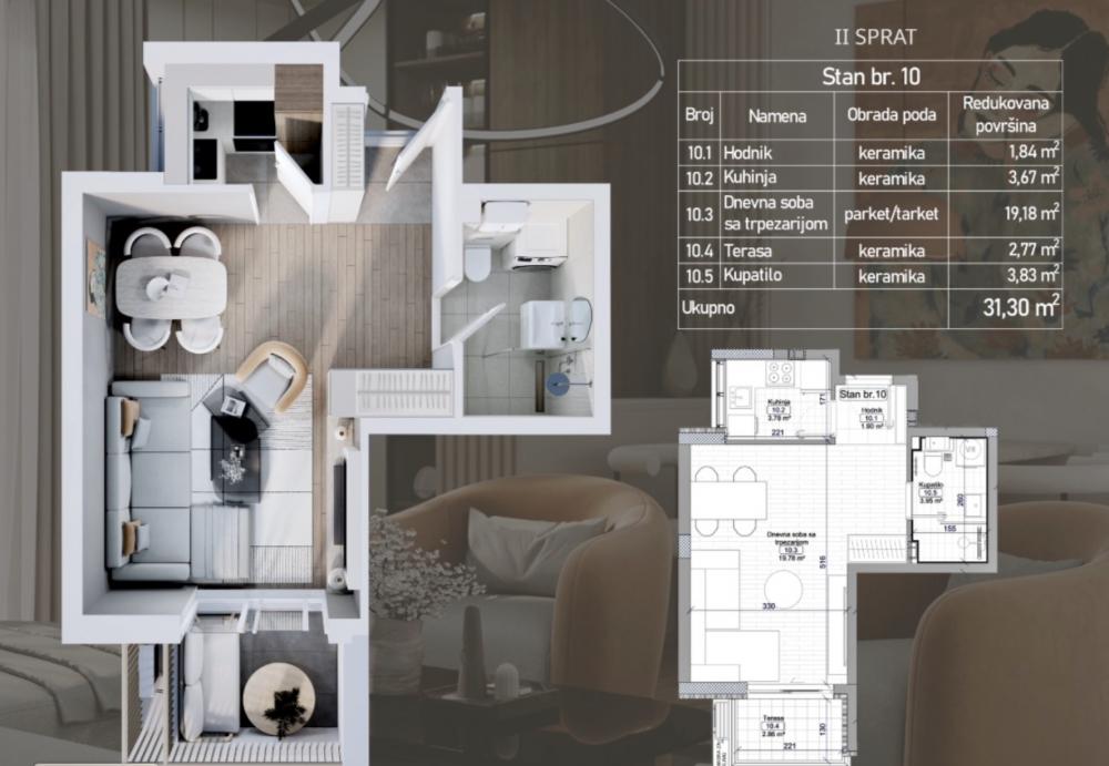 Telep, 31.30m2, jednosoban stan, novogradnja, 78.250 €